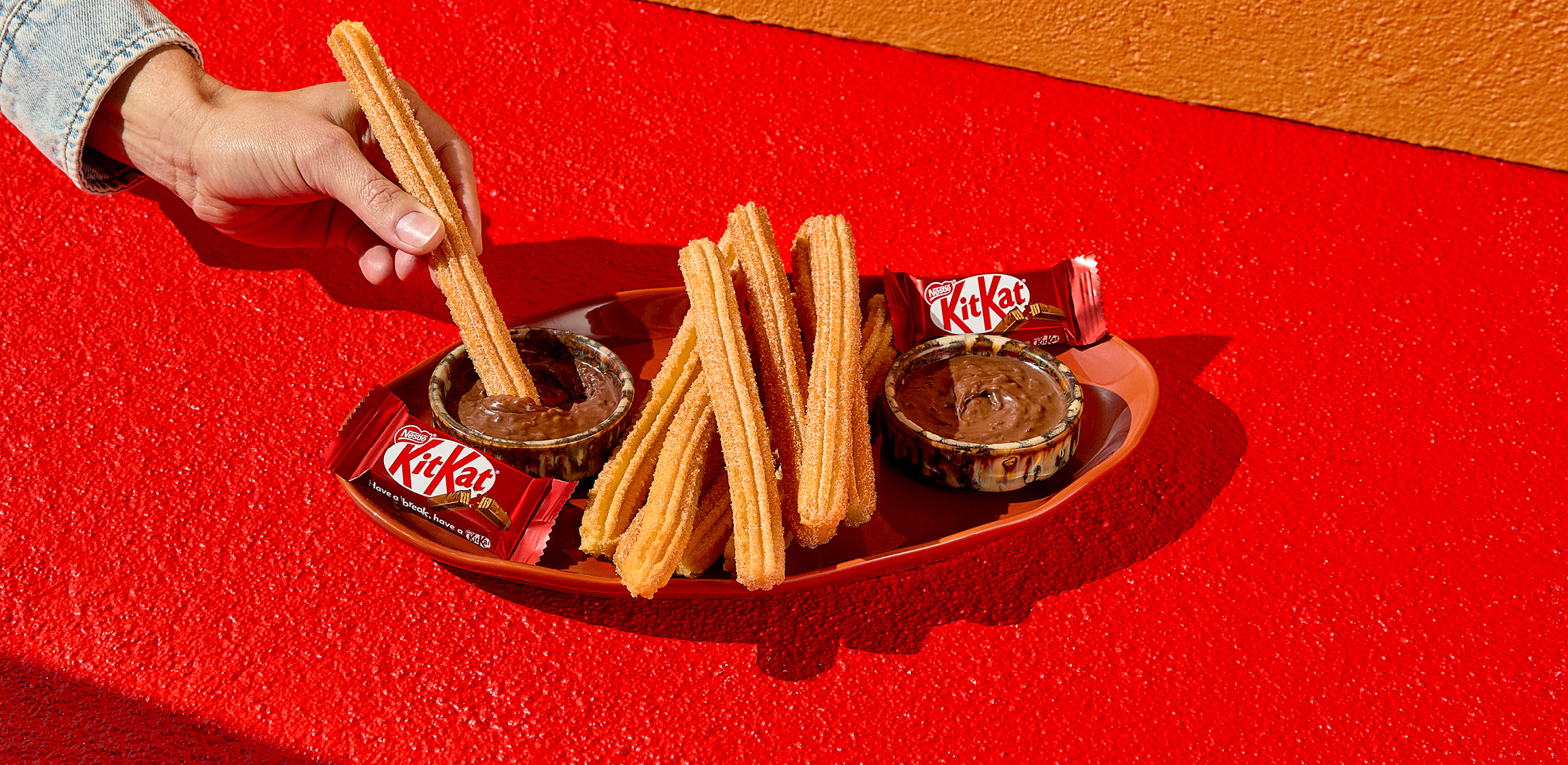 Try our delicious churros with smooth and crunchy KITKAT Spread with a mini KITKAT bar. Perfect for sharing.